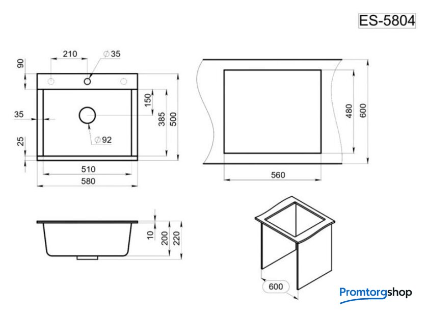 врезная на столешницу, искусственный камень, размеры: 50x58 см, в шкаф 60 см