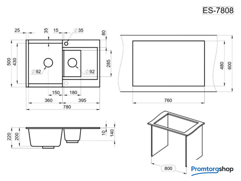 врезная на столешницу, искусственный камень, размеры: 50x78 см, в шкаф 80 см
