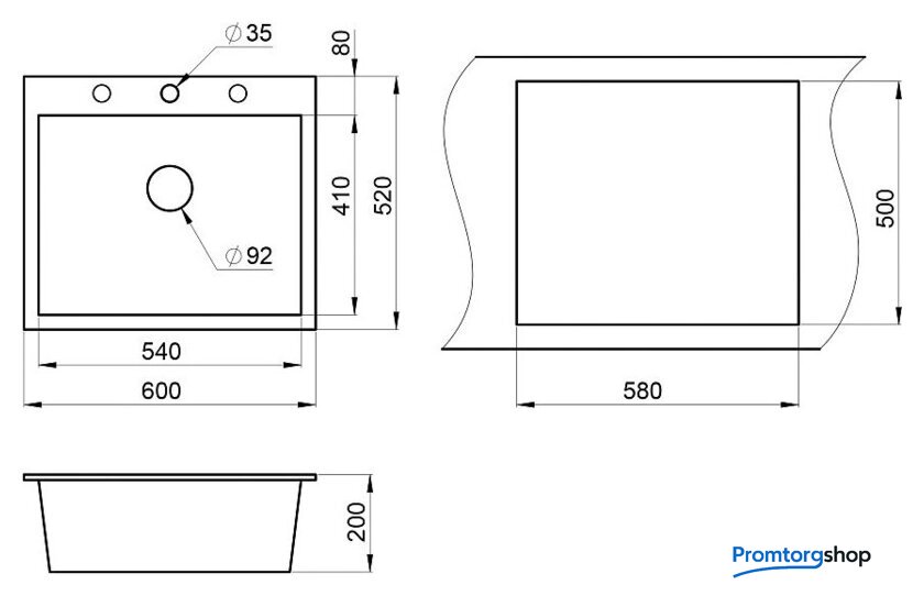 врезная на столешницу, искусственный камень, размеры: 60x52 см, в шкаф 60 см