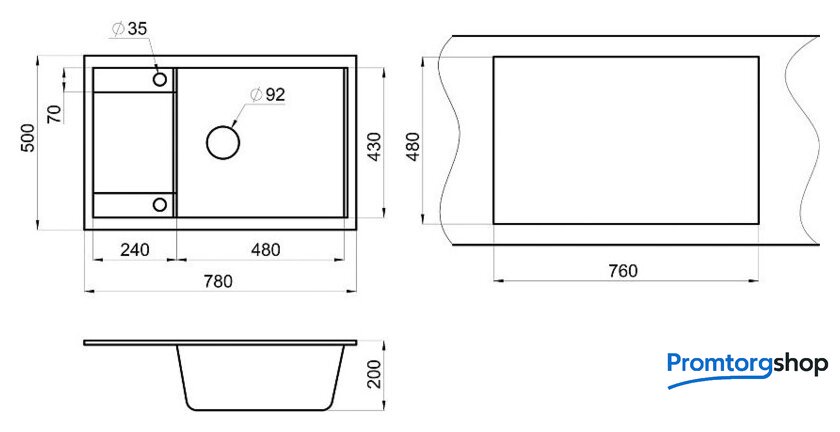 врезная на столешницу, искусственный камень, размеры: 78x50 см, в шкаф 60 см