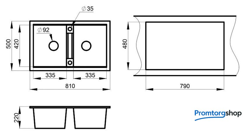 врезная на столешницу, искусственный камень, размеры: 81x50 см, в шкаф 80 см