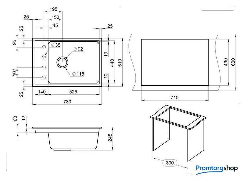 Комплектация | Сифон, дозатор для жидкого мыла (нерж) и ролл-мат |