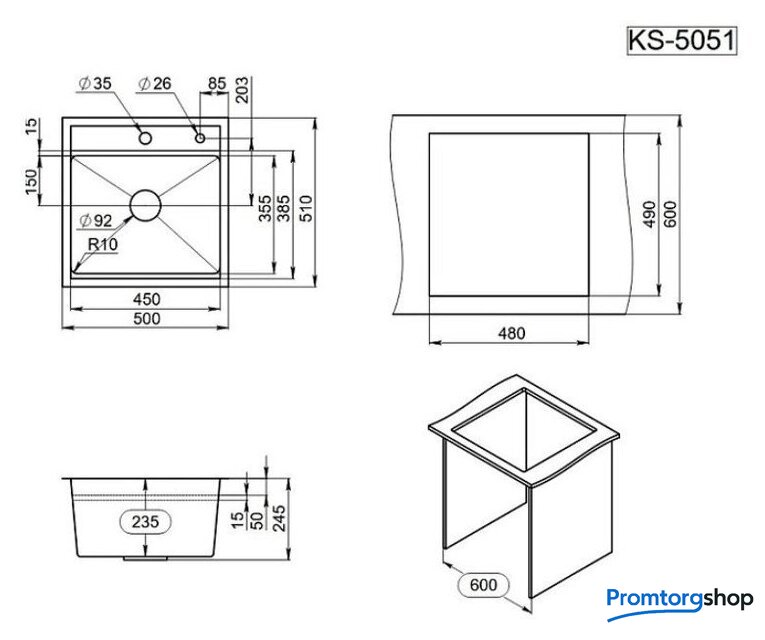 Длина мойки | 51 см |