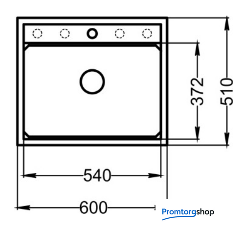 Перелив | в основной чаше. Отверстие для смесителя + Намеченные отверстия 4 шт |