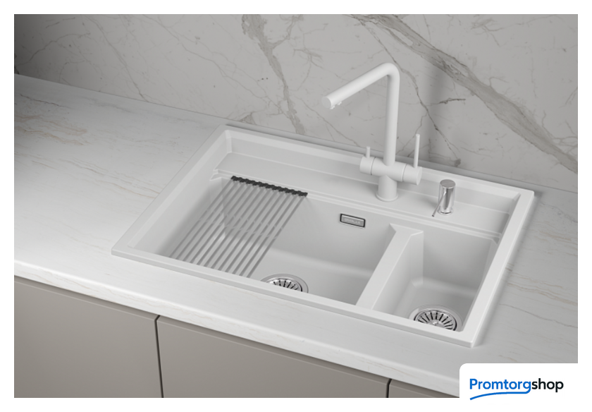 Способ установки | врезная под столешницу. Кухонная мойка с двумя чашами — это надежность и удобство в одном флаконе! Одна чаша предназначена для мытья большой посуды, а вторая - для ополаскивания и мойки фруктов, овощей и мелкой посуды. Материал — кварцевый песок, который обеспечивает прочность и долговечность мойки. Мойка легко моется и устойчива к высоким температурам. В комплекте: ролл-мат, дозатор жидкого мыла, сифон (слив, перелив), инструкция и гарантийный талон. |