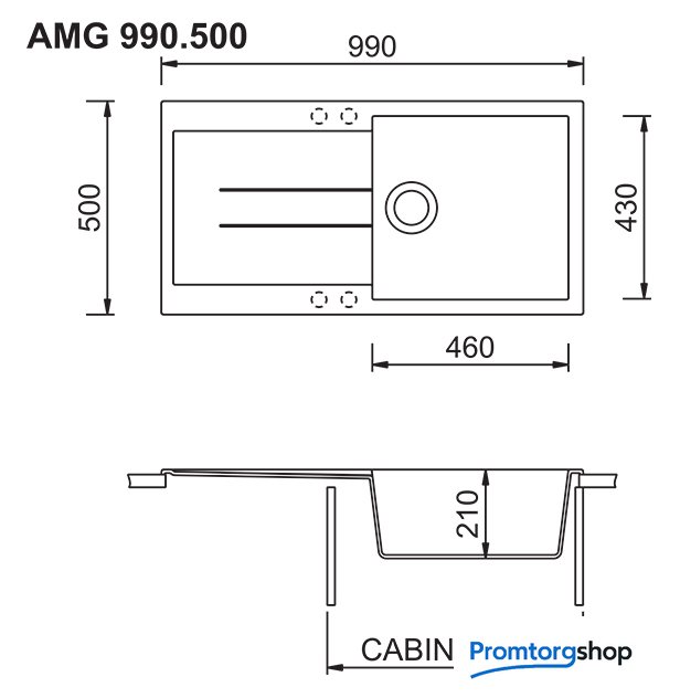 врезная на столешницу, искусственный камень, размеры: 99x50 см, в шкаф 60 см