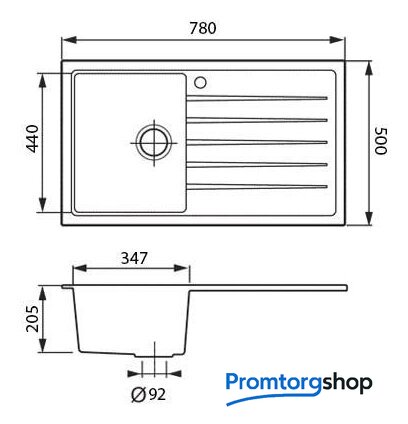врезная на столешницу, искусственный камень, размеры: 78x50 см, в шкаф 50 см
