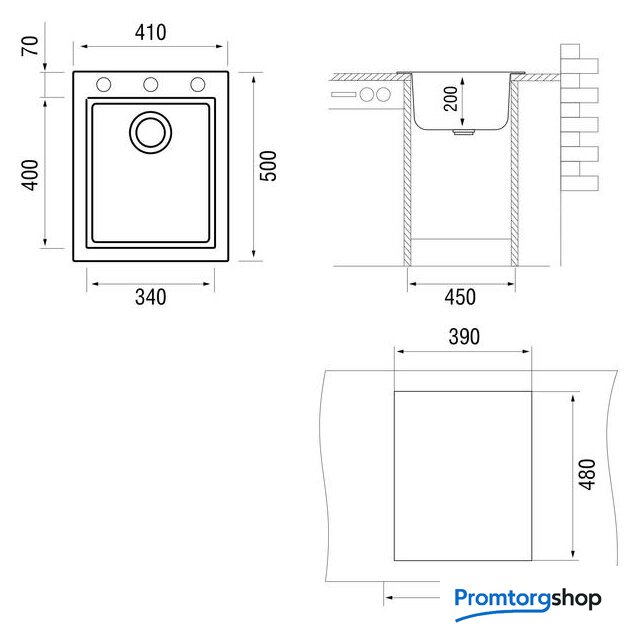 врезная на столешницу, искусственный камень, размеры: 41x50 см, в шкаф 45 см