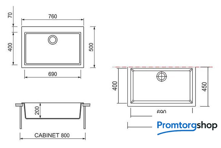врезная на столешницу, искусственный камень, размеры: 76x50 см, в шкаф 80 см