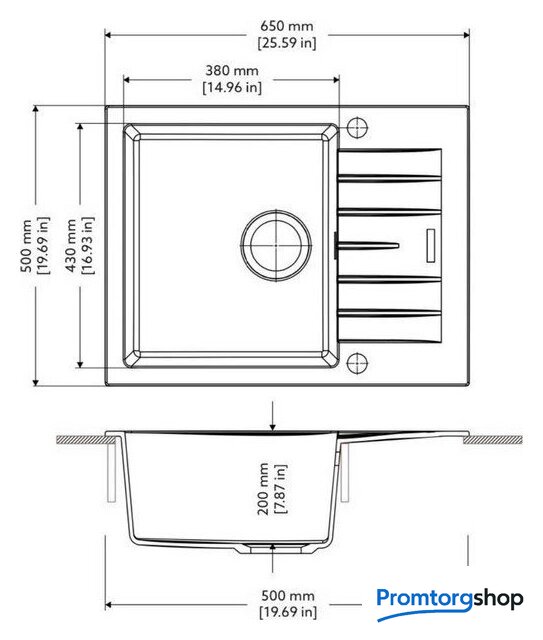 врезная на столешницу, искусственный камень, размеры: 50x65 см