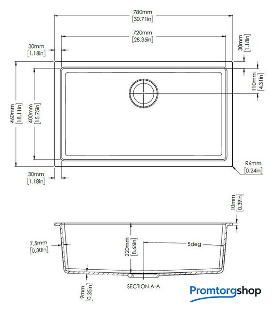 | Диаметр сливного отверстия | 3.5" |