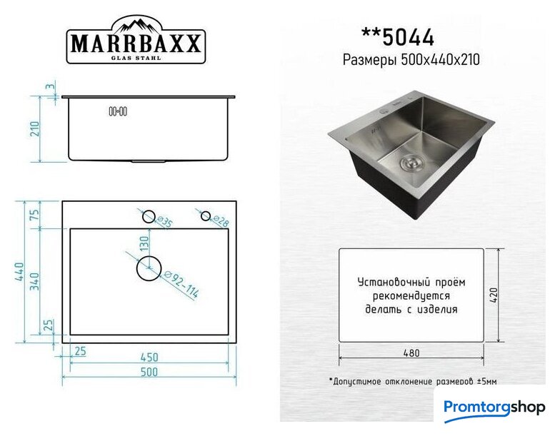 Кухонные мойки MARRBAXX MARRBAXX B5044-R (черный/графит) Код товара: 10880762