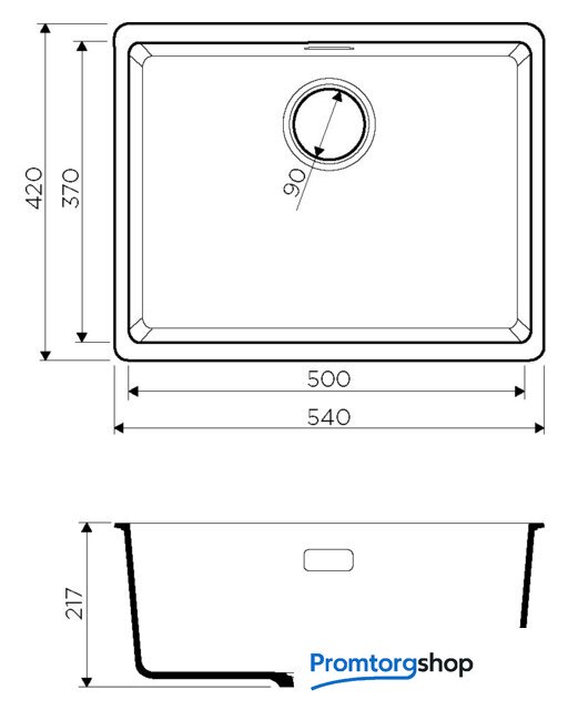 врезная под столешницу, искусственный камень, размеры: 54x42 см, в шкаф 60 см