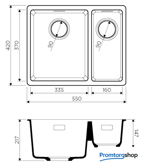 врезная под столешницу, искусственный камень, размеры: 55x42 см, в шкаф 60 см