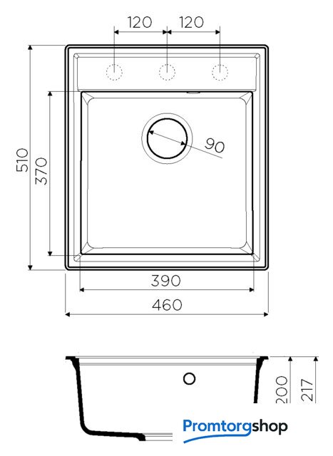 врезная на столешницу, искусственный камень, размеры: 46x51 см, в шкаф 45 см