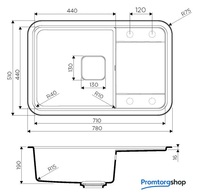 врезная на столешницу, искусственный камень, размеры: 78x51 см, в шкаф 50 см