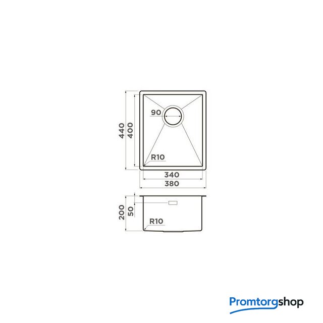 врезная на столешницу/врезная под столешницу/врезная вровень со столешницей, нержавеющая сталь, размеры: 38x44 см, в шкаф 40 см