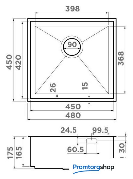 врезная под столешницу/интегрированный, нержавеющая сталь, размеры: 48x45 см, в шкаф 60 см