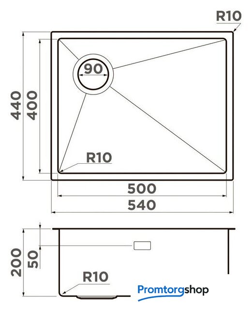 врезная на столешницу/врезная под столешницу/врезная вровень со столешницей, нержавеющая сталь, размеры: 54x44 см, в шкаф 60 см