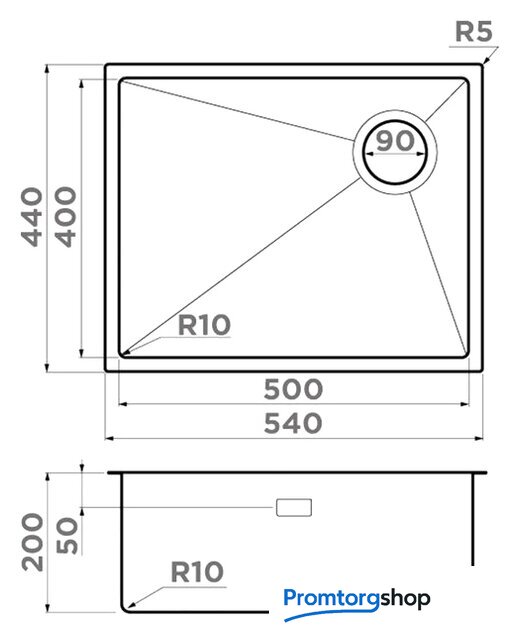 врезная на столешницу/врезная под столешницу/врезная вровень со столешницей, нержавеющая сталь, размеры: 54x44 см, в шкаф 60 см