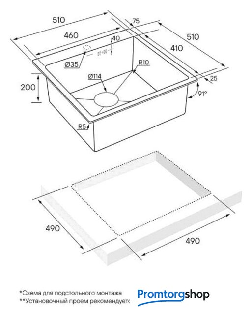 | Глубина мойки | 51 см |