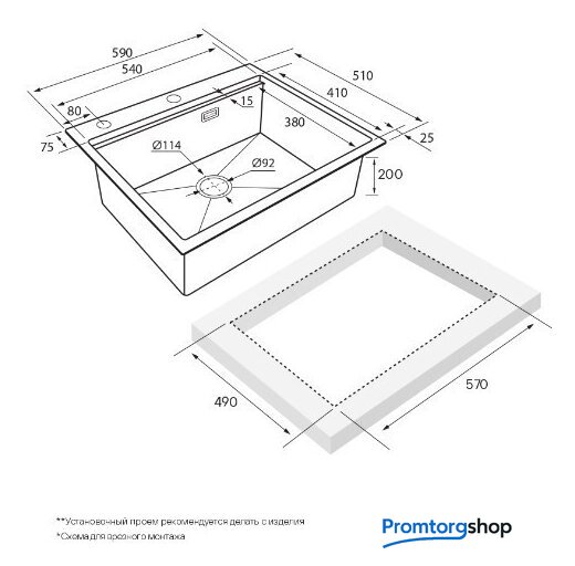 врезная на столешницу/врезная вровень со столешницей, нержавеющая сталь, размеры: 51x59 см, в шкаф 60 см