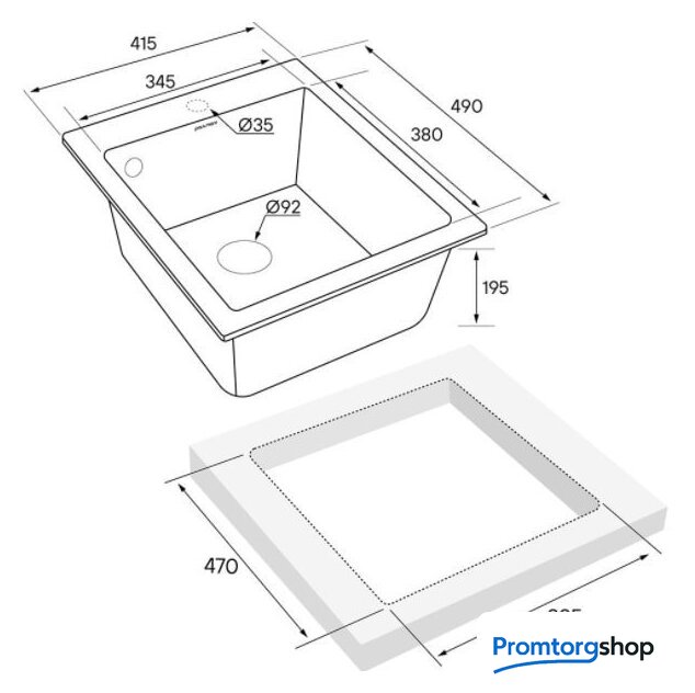 Ширина мойки 41.5 см