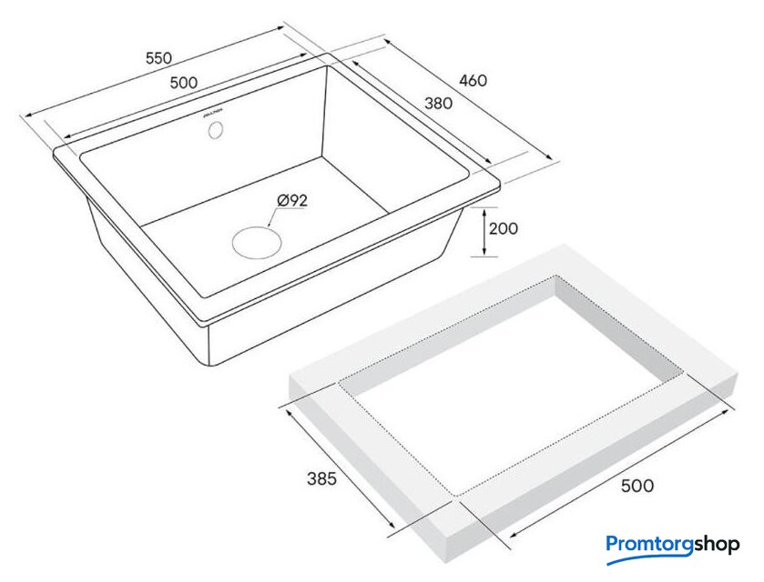 врезная на столешницу/врезная под столешницу/врезная вровень со столешницей, искусственный камень, размеры: 55x46 см, в шкаф 60 см
