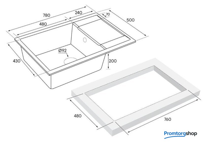 врезная на столешницу, искусственный камень, размеры: 78x50 см, в шкаф 80 см