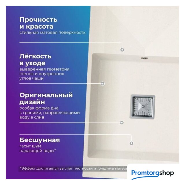 врезная на столешницу, искусственный камень, размеры: 78x50 см, в шкаф 60 см