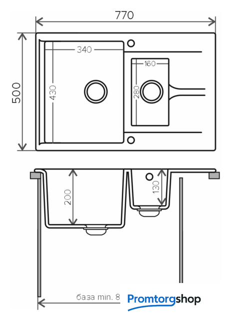 врезная на столешницу, искусственный камень, размеры: 77x50 см, в шкаф 80 см