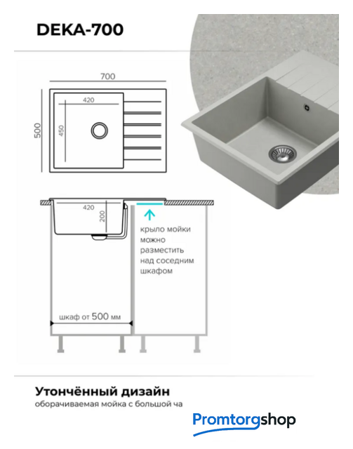 | Ширина мойки | 70 см |