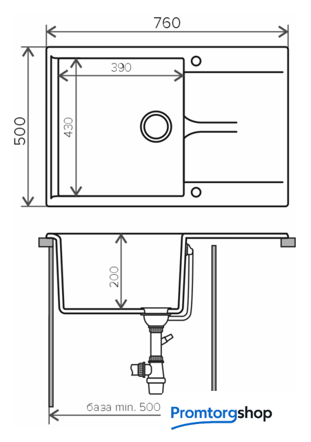 врезная на столешницу, искусственный камень, размеры: 76x50 см, в шкаф 50 см