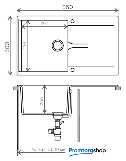 врезная на столешницу, искусственный камень, размеры: 86x50 см, в шкаф 50 см