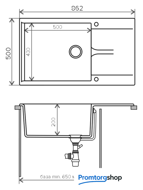 врезная на столешницу, искусственный камень, размеры: 86.2x50 см, в шкаф 65 см
