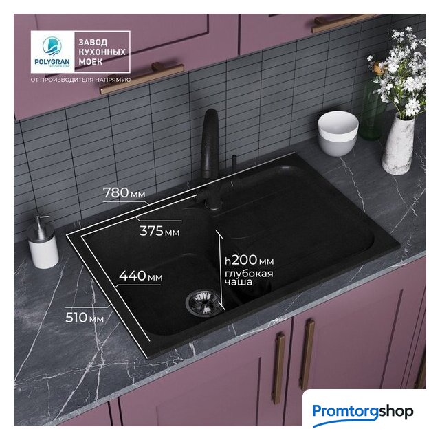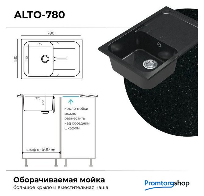 врезная на столешницу, искусственный камень, размеры: 51x78 см, в шкаф 50 см