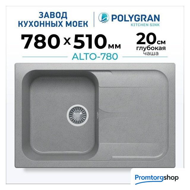 Кухонные мойки Polygran Polygran Alto 780 (серый) Код товара: 11255223