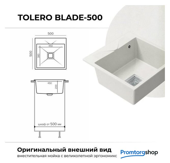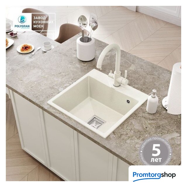врезная на столешницу, искусственный камень, размеры: 50x50 см, в шкаф 50 см