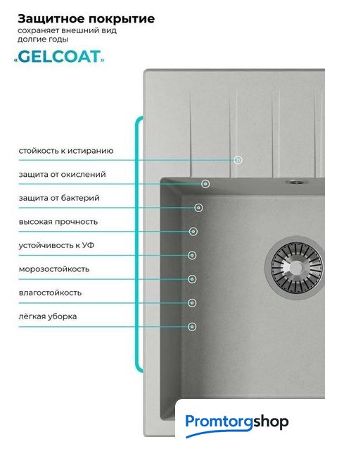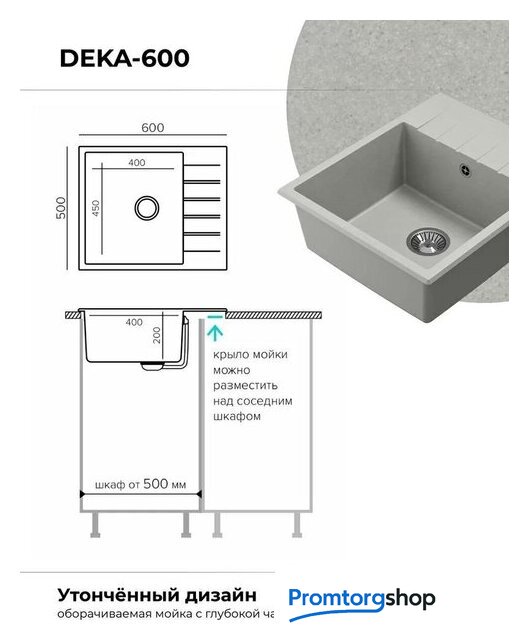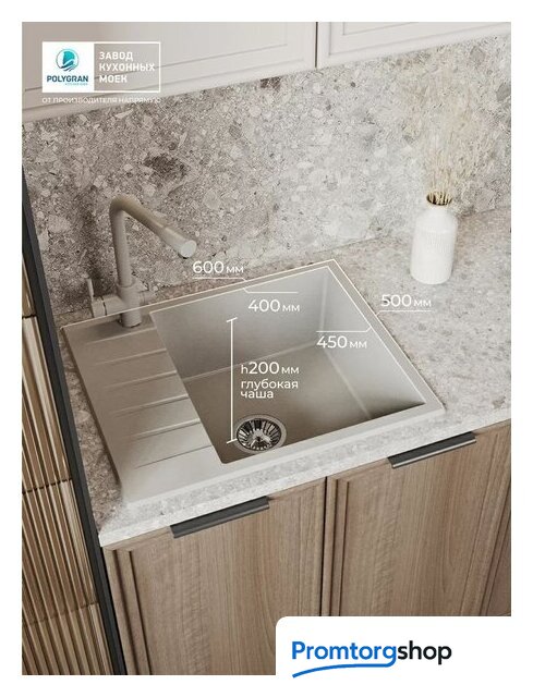 врезная на столешницу, искусственный камень, размеры: 50x60 см, в шкаф 50 см