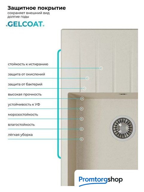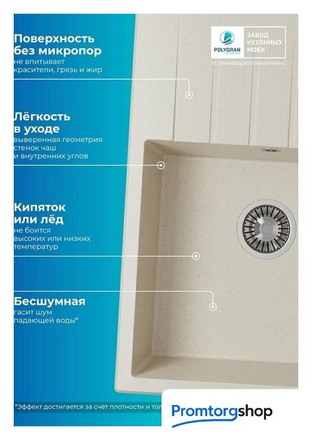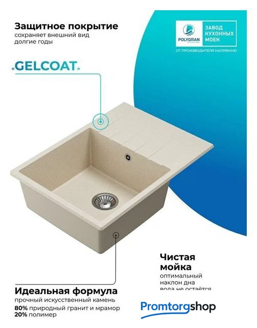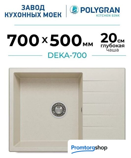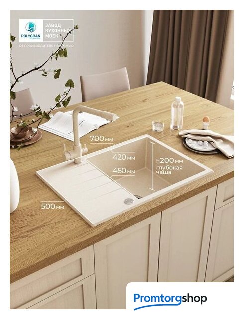 врезная на столешницу, искусственный камень, размеры: 50x70 см, в шкаф 50 см