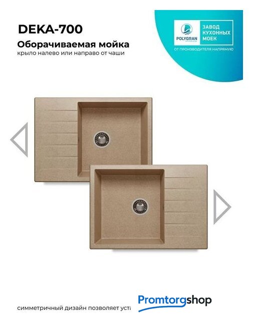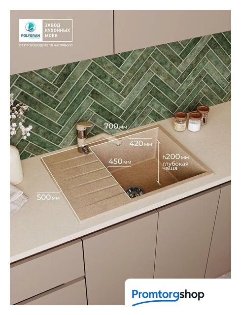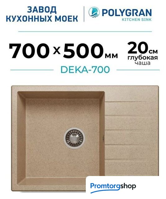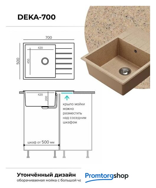 врезная на столешницу, искусственный камень, размеры: 50x70 см, в шкаф 50 см