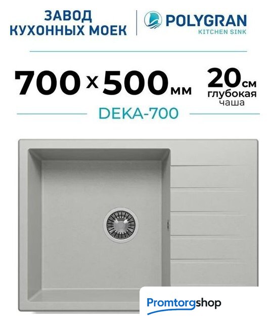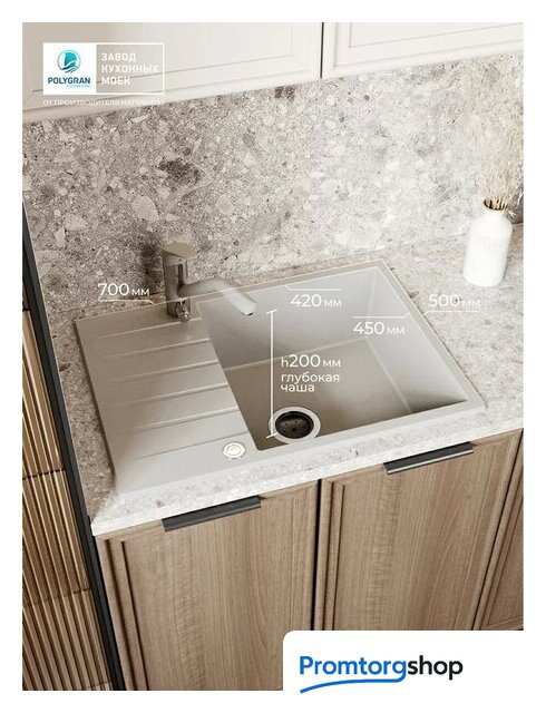 врезная на столешницу, искусственный камень, размеры: 50x70 см, в шкаф 50 см