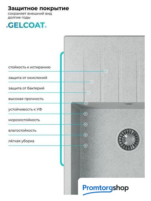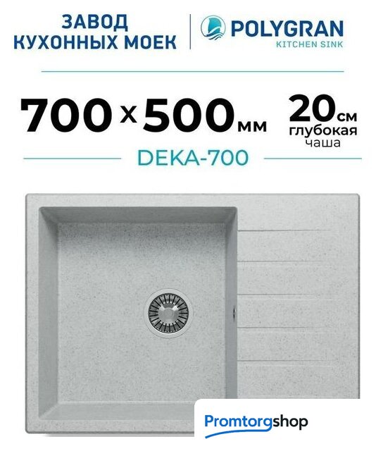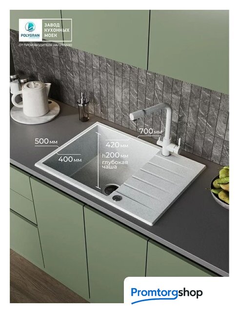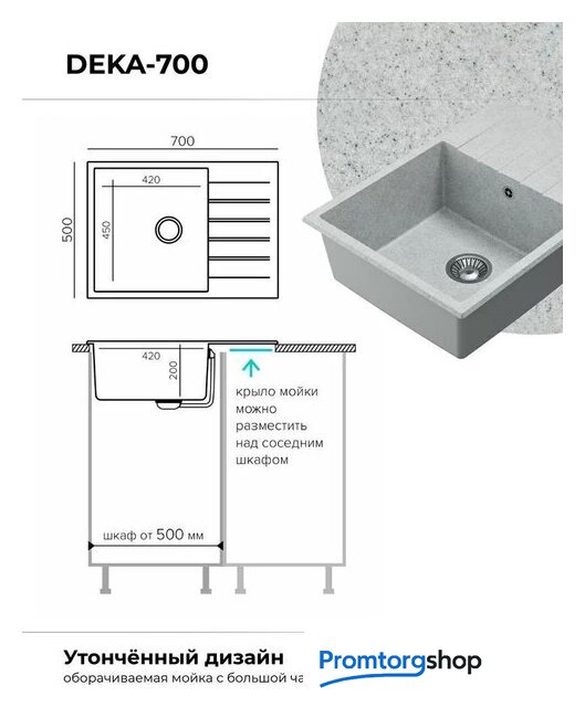 врезная на столешницу, искусственный камень, размеры: 50x70 см, в шкаф 50 см