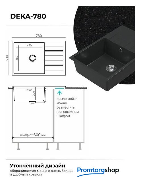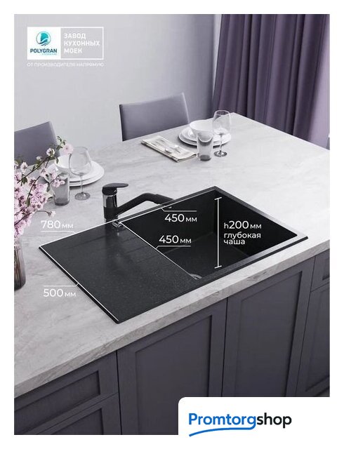 врезная на столешницу, искусственный камень, размеры: 50x78 см, в шкаф 60 см