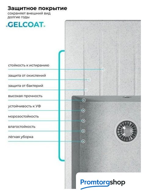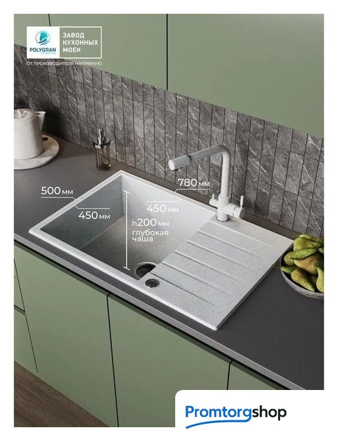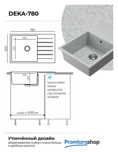 врезная на столешницу, искусственный камень, размеры: 50x78 см, в шкаф 60 см