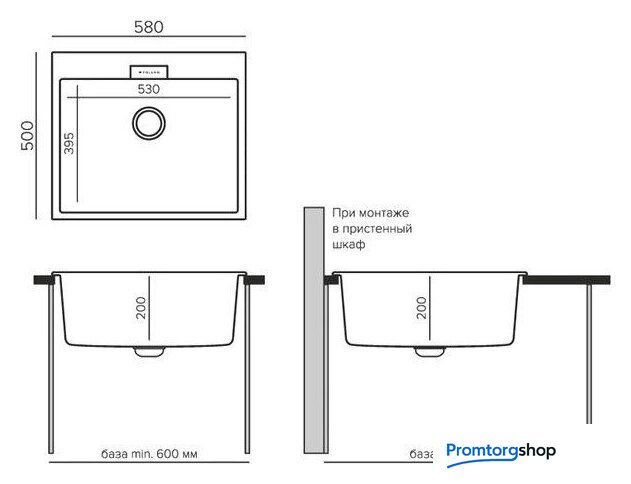 врезная на столешницу, искусственный камень, размеры: 50x58 см, в шкаф 60 см