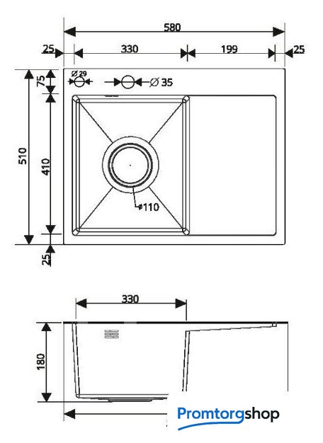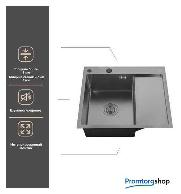 врезная на столешницу, нержавеющая сталь, размеры: 51x58 см