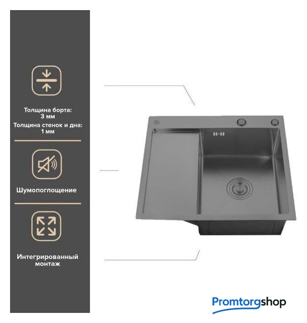 врезная на столешницу, нержавеющая сталь, размеры: 51x58 см