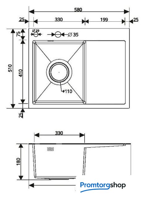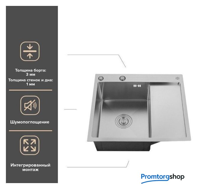 врезная на столешницу, нержавеющая сталь, размеры: 51x58 см