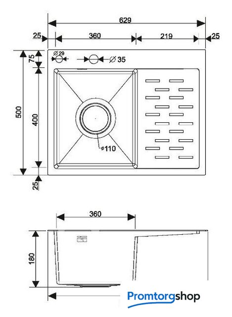 Длина мойки | 62.9 см |